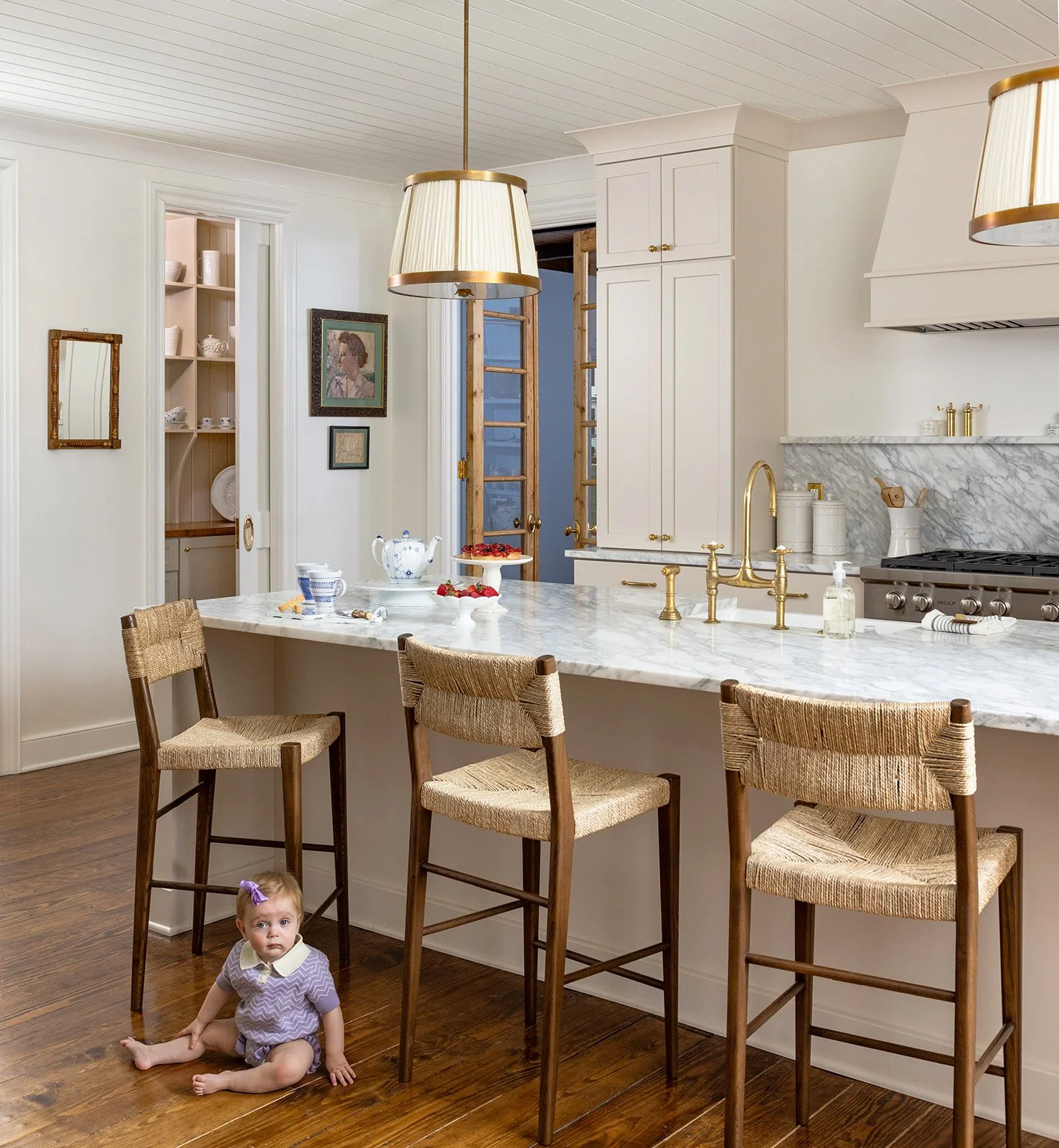 A kitchen of this size requires a lot of cabinets. Keeping them simple and using a stock cabinetry color allowed us to put more money towards the lighting and plumbing fixtures, the things that add character to a space.