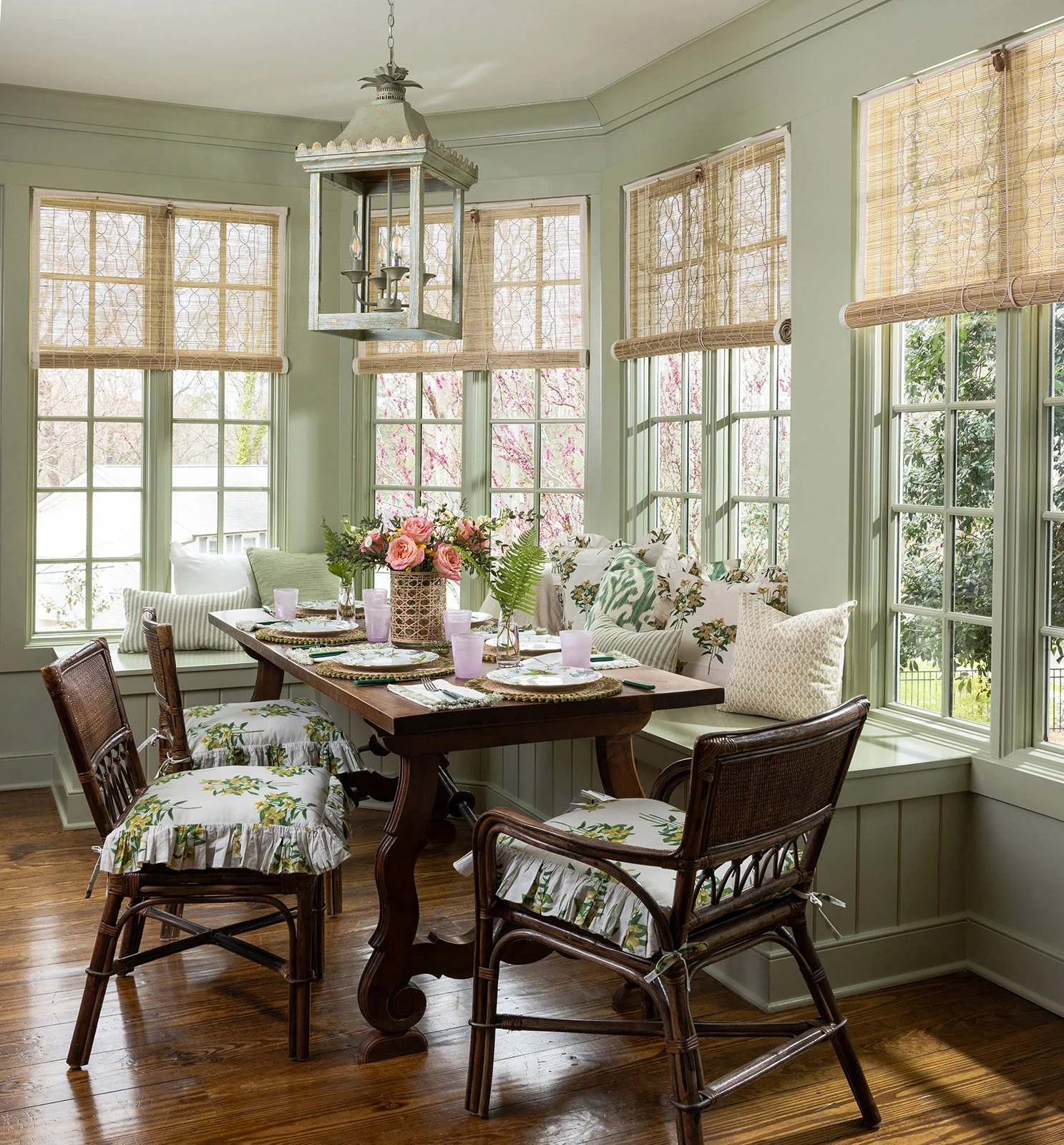 A banquette is added to the Sunroom providing additional seating for informal meals