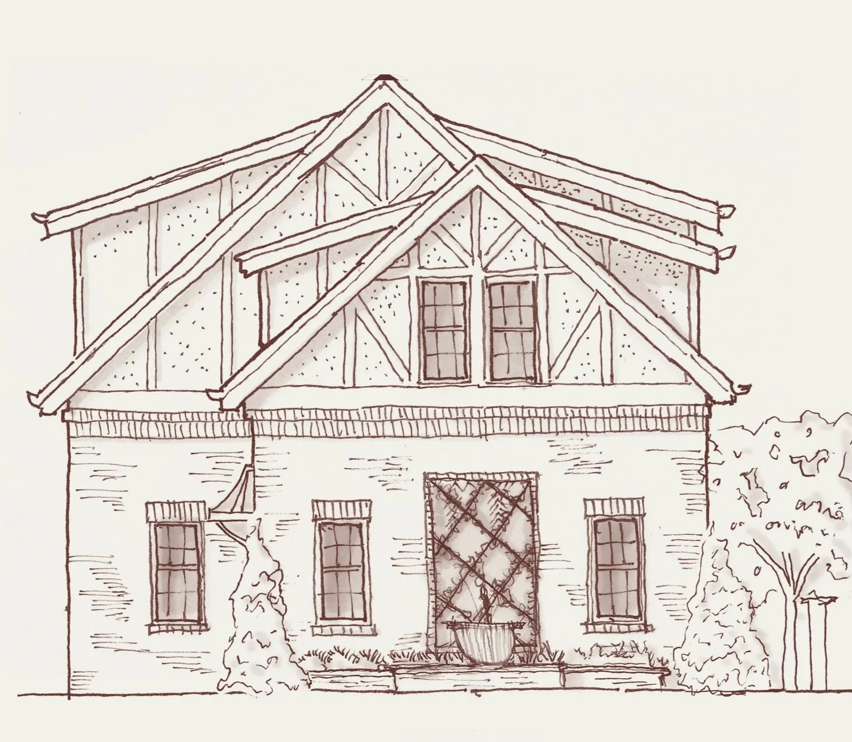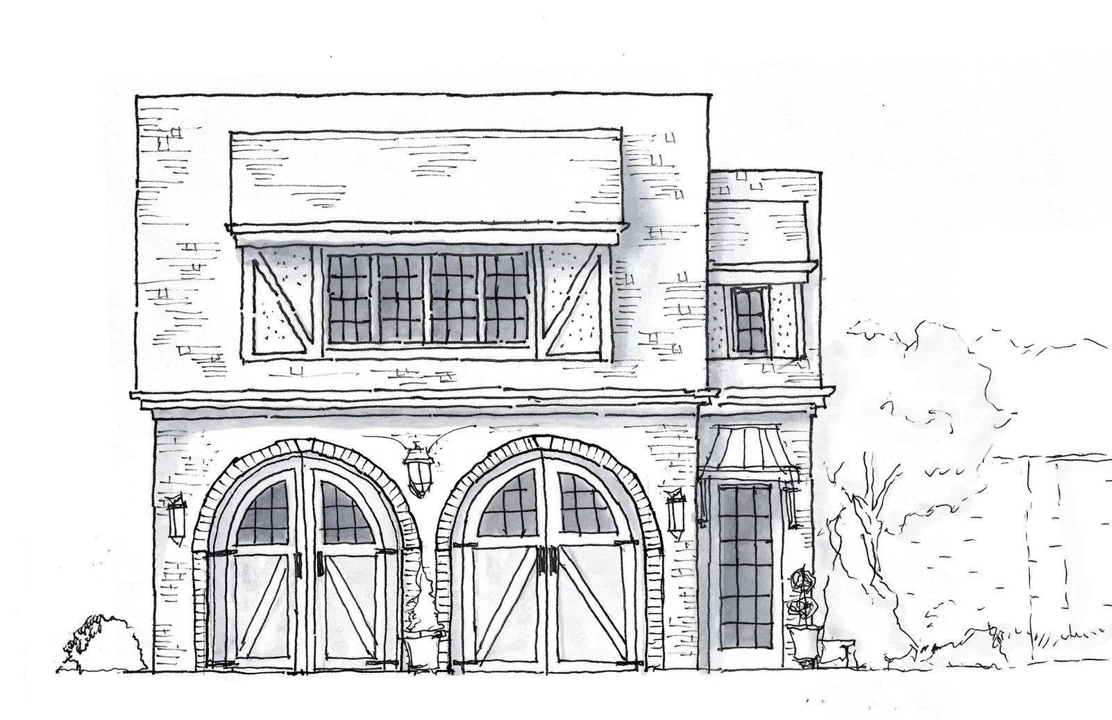 Studying the design and construction methods of Tudor architecture, as well as carriage houses of the same era, provided details that give the new garage a sense of history and permanence.